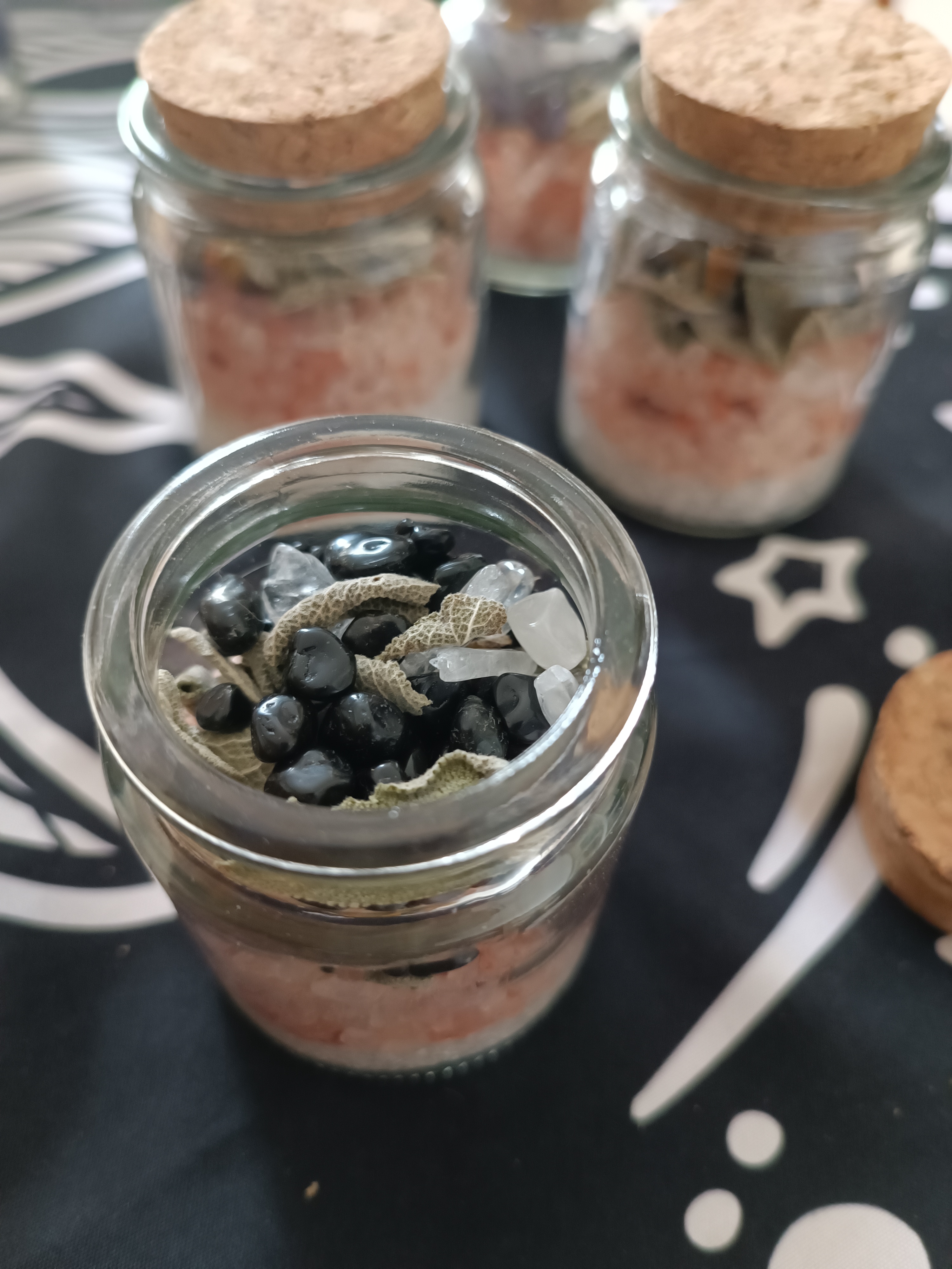Petite fiole sel de protection sauge tourmaline et cristal de roche